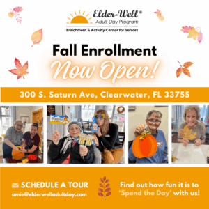 FL AHCA #9639 | Elder-Well® is a registered trademark owned by Spend The Day Franchising, Inc. Each Elder-Well® Program is an independently owned and operated business. National toll-free number: 1-866-821-4333